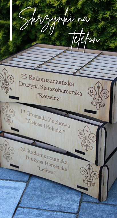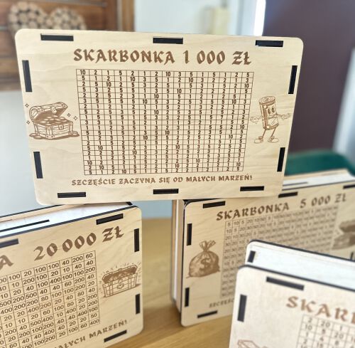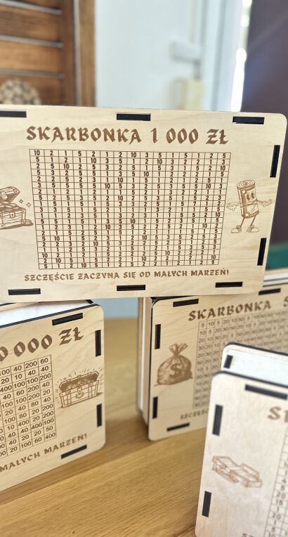 grawerowane plastry drewna, skrzynki. Produktem numer jeden zwłaszcza wśród szkół, firm, placówek