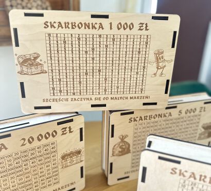 grawerowane plastry drewna, skrzynki. Produktem numer jeden zwłaszcza wśród szkół, firm, placówek